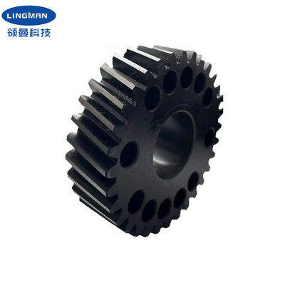 기어는 기계적인 전송에서 공통 부분입니다, 기어가 고급 품질 강도 합금 강, 탄소 처리되고 굳어진 표면 처리, 오래간 강한 베어링 캐패시티로 만들어집니다. 레이저 척에 의해 사용된 기어는 곧은 기어와 나선형 기어로 분할될 수 있습니다. 나선형 기어의 중첩 계수는 스퍼 기어보다 더 크고 따라서 나선형 기어의 베어링 캐패시티가 스퍼 기어 보다 더 높습니다. 응용에서, 나선형 기어는 넓게 매끄러운 전송, 낮은 충돌, 진동과 소음의 그것의 특성 때문에 고속도와 아주 튼튼하 이유에서 사용됩니다. 가장 큰 나선형 기어의 장점은 고강도와 소음 진동 제어를 뒤이어고 투과율 정확도입니다 (하이 엔드 중첩, 모드 분석에서 낮은 조화한 공명). 곧은 장비는 심지어 모션 평활화 (선 부하 곡선의 평활도)의 관점에서 순수하게 나선형 기어 보다 더 잘 할 수 있습니다.